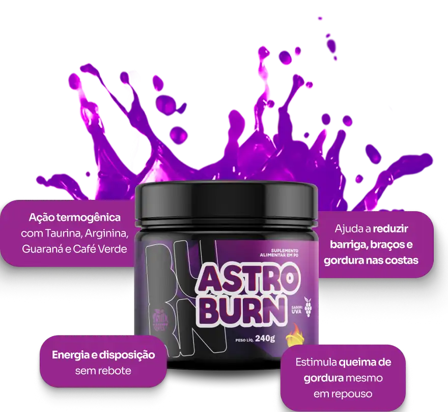 Se você sente que tudo que come “estaciona” no seu corpo, o problema pode estar no ritmo do seu metabolismo. A versão termogênica do AstroBurn acelera esse processo e faz seu corpo queimar mais até em repouso.